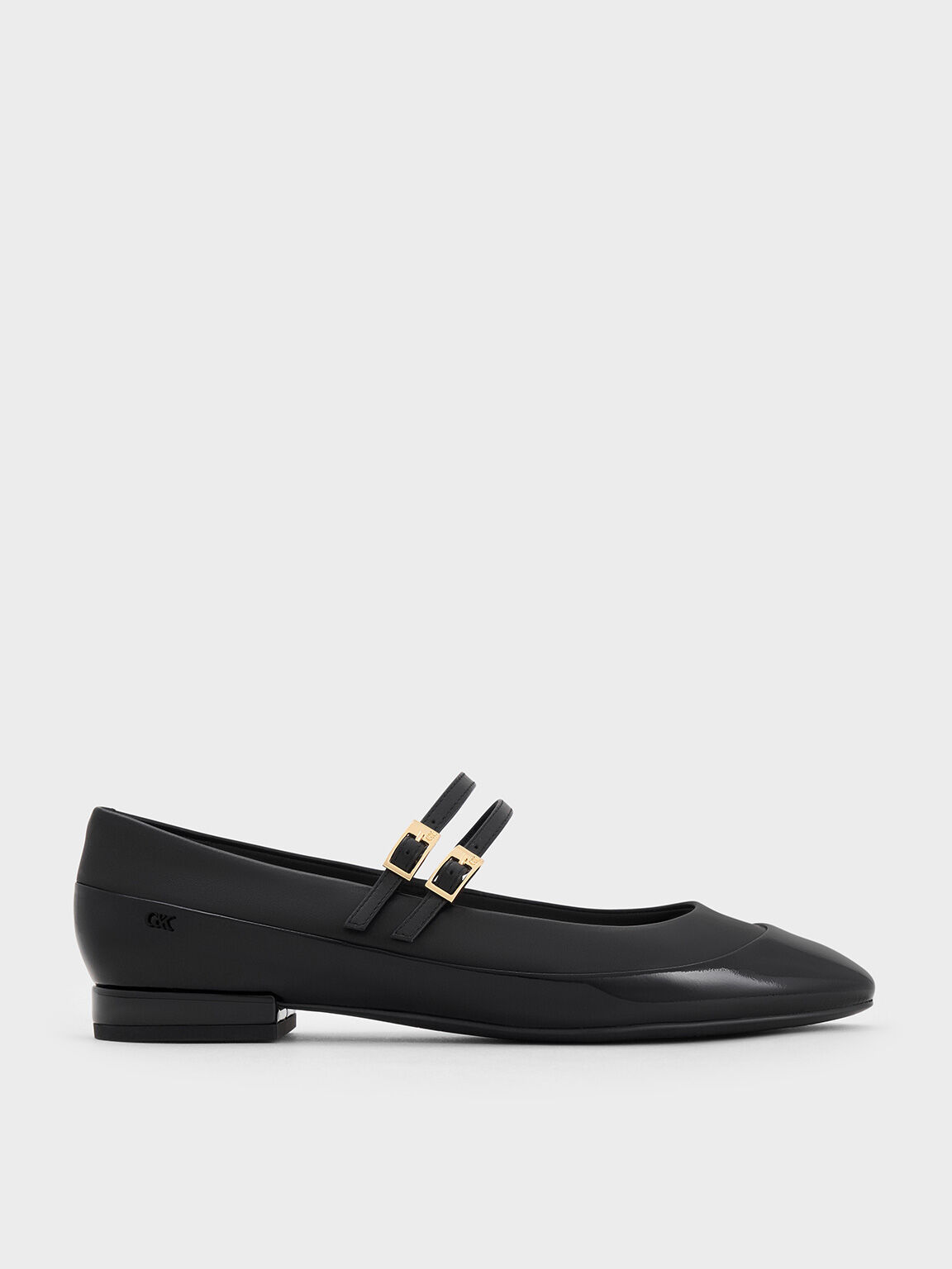 Leather & Patent Double-Strap Mary Jane Flats – SIZE 37