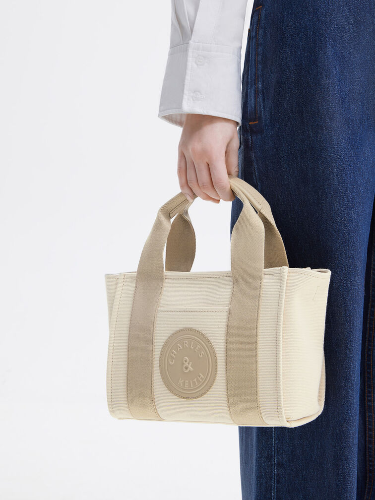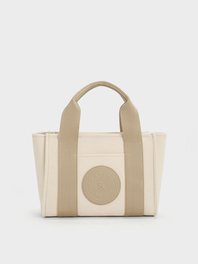 Kay Canvas Contrast-Trim Tote Bag – Taupe