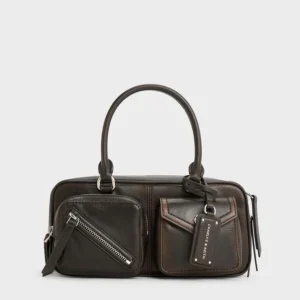 Thea Croc-Embossed Top Handle Bag – Mocha Brown